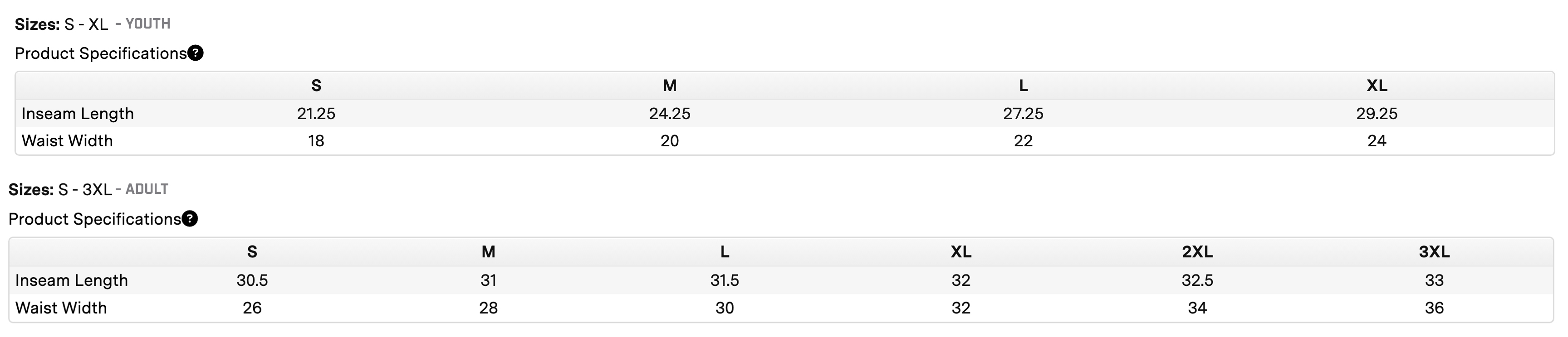 Click to view sizing chart.